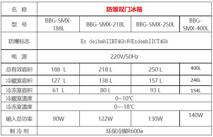 防爆雙門冰箱